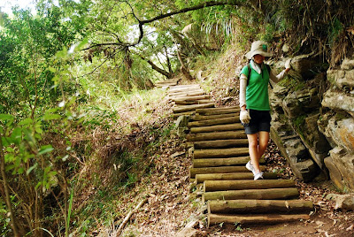 大約早上八點半,抵達了慈母橋登山口,從慈母橋到終點燕子口,大約是10.3公里,以平地腳程來說大概2小時就能走完,但是錐麓古道垂直高差超過五、六百公尺,陡上算是相當恐怖的,因此我們粗估6-7小時可以完成(總是要留些拍照時間)。一開始我們沿著荖西溪往山中前進,這段路算走得挺緩慢的,因為我們一直在照相,加上後來開始爬陡坡,帶頭的爺爺開始氣喘吁吁,因此第一個小時我們只走了1公里。突然有點危機意識,想到這樣子的速度我們要10個小時才下的了山,水可能會不夠,也可能趕不上回花蓮的車子。雖然有了危機意識,但我們還是一直拍照,畢竟,難得嘛。