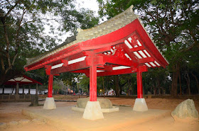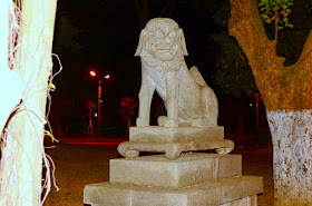 這次造訪,時間已經晚了,這才發現當年對於參道兩旁的建築物,幾乎完全沒有印象,當年的記載中只看到了石燈籠跟兩對狛犬,這次才發現原來嘉義神社仍保留了社號標、石燈籠數對、齋館與社務所(今日嘉義市史蹟資料館)、神輿庫(被誤植為祭器庫),和一代嘉義神社本殿的基座,只可惜時間晚了,齋館與祭器庫已關閉不能參觀,只能上射日塔看看夜景了!